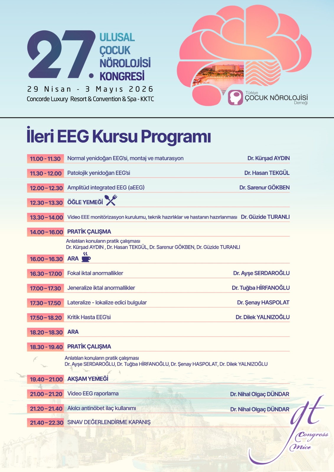 Kurslar, kongre bilimsel programı kapsamında yapılacak olup kongre katılımcısı olunması zorunludur.